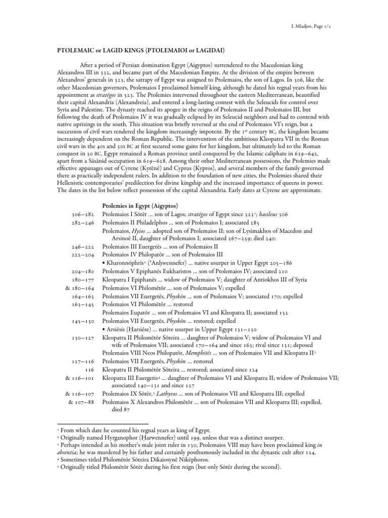 306–282 Ptolemaios I Sōtēr … son of Lagos; stratēgos of Egypt since 323 1; basileus 306