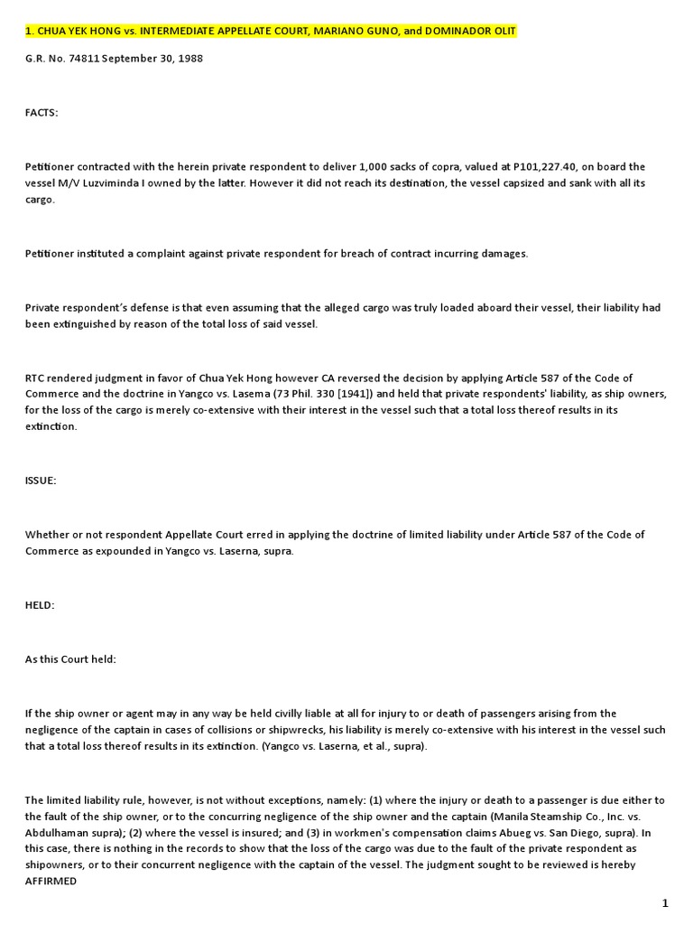 RTC rendered judgment in favor of Chua Yek Hong however CA reversed the decision by applying Article 587 of the Code of