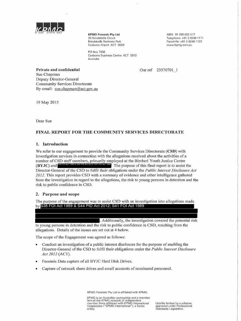 (BYJC) and S38 FOI Act 1989 & S44 PID Act 2012; S41 FOI Act 1989 The purpose of this final report is to assist the