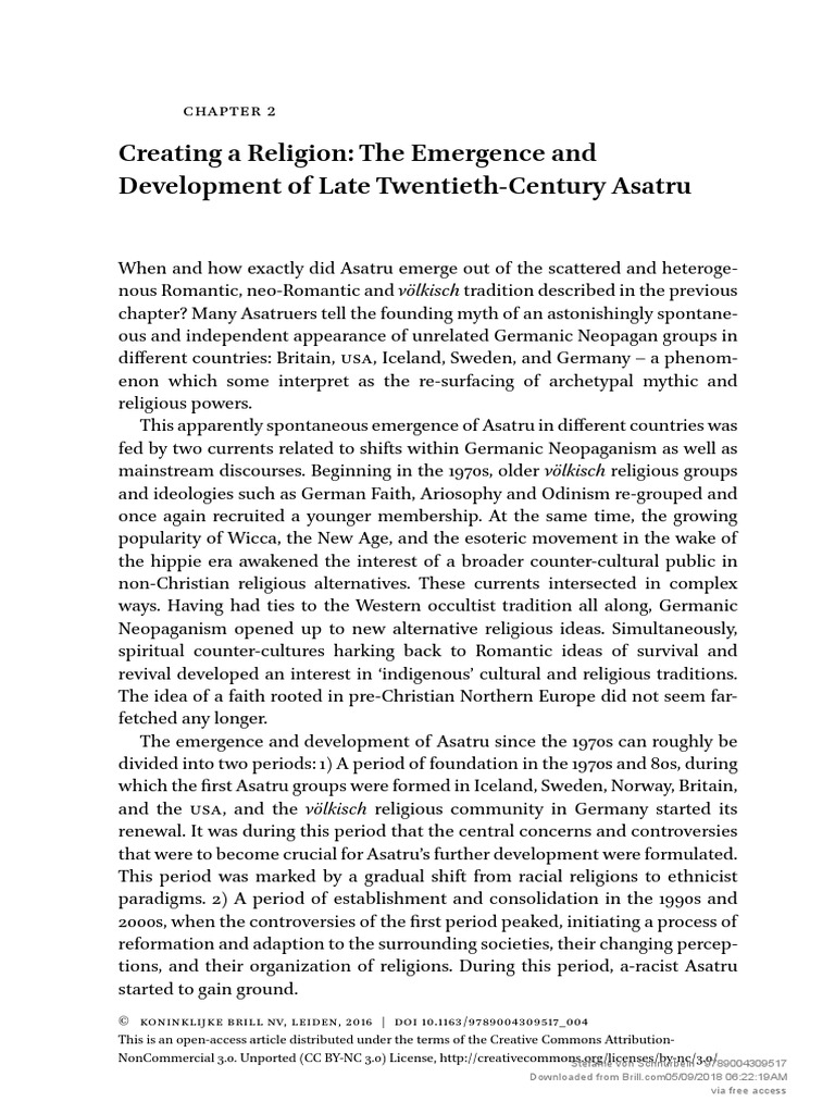 Unless noted otherwise, the discussion of the emergence of German Germanic Neopaganism