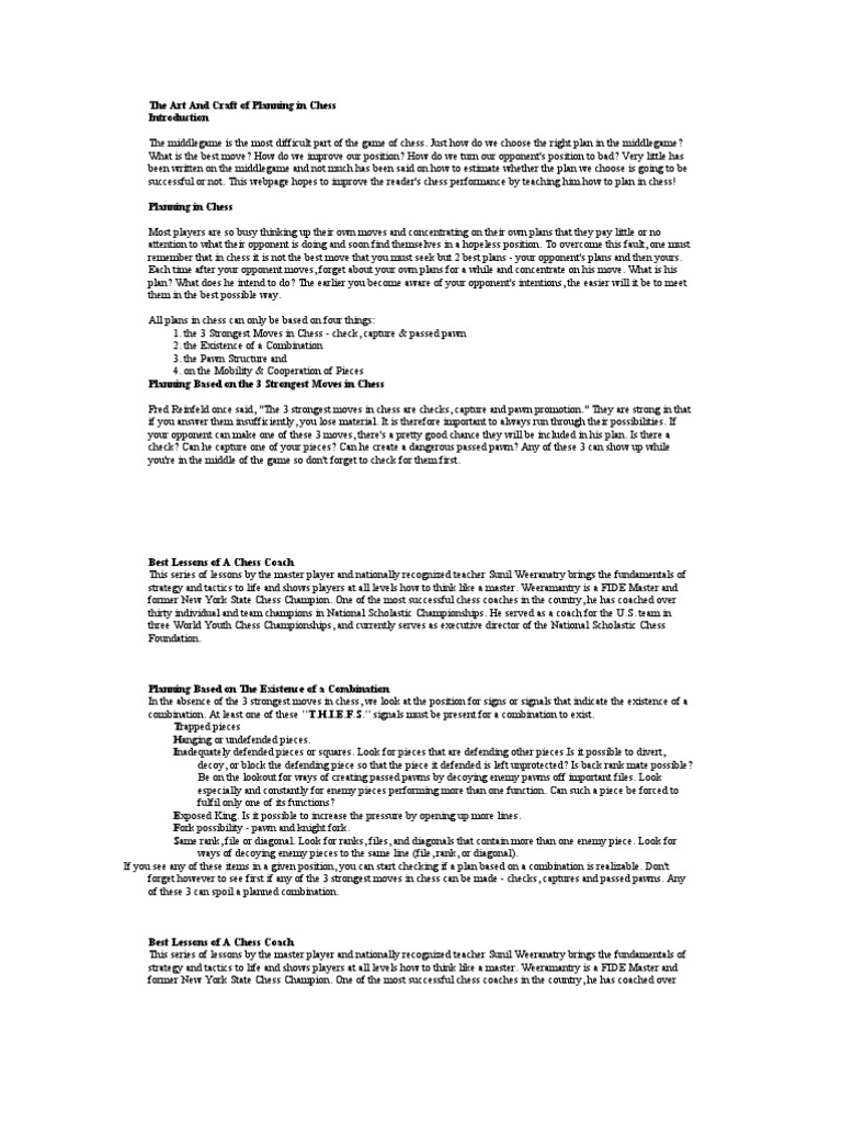 successful or not. This webpage hopes to improve the reader's chess performance by teaching him how to plan in chess!