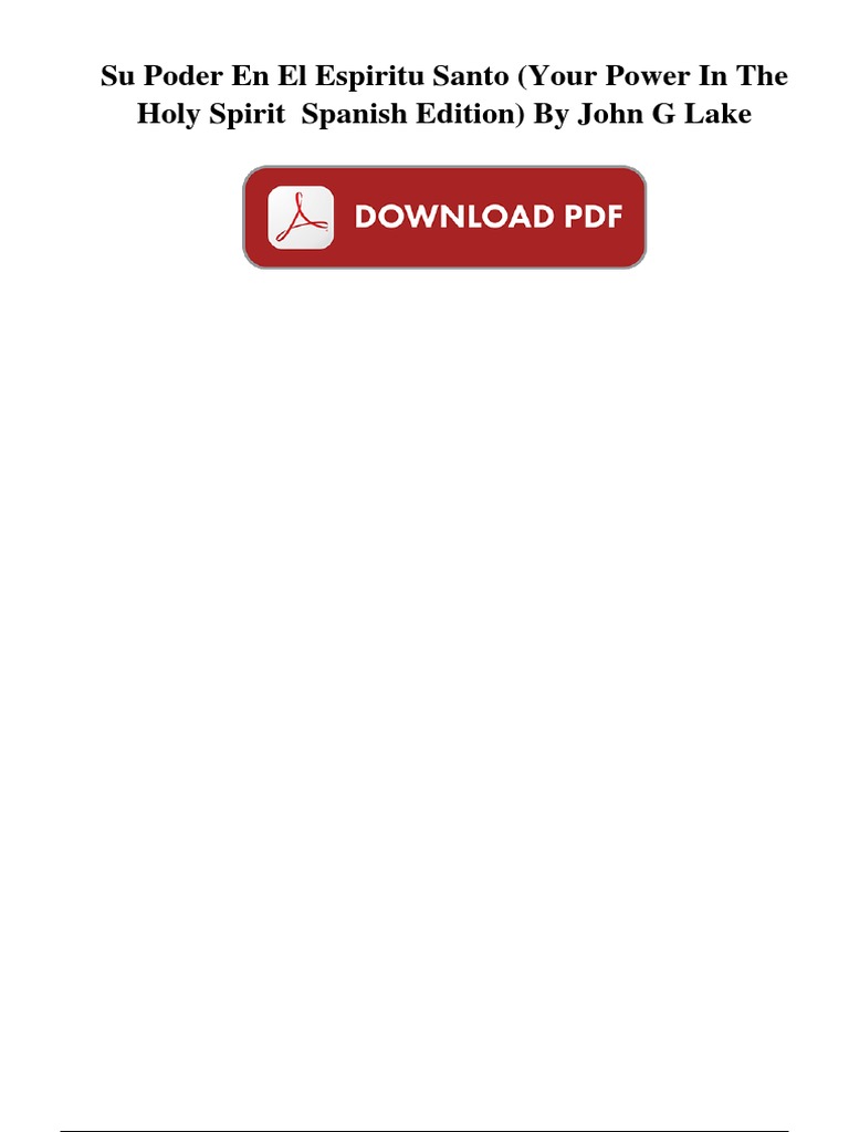 Su Poder en El Espiritu Santo Your Power in The Holy Spirit Spanish Edition by John G Lake PDF