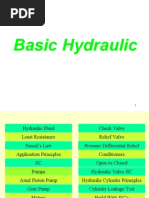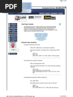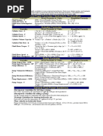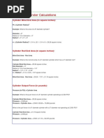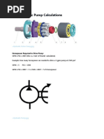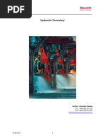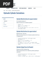 The document provides calculations and formulas for hydraulics components including pumps, cylinders, motors, and piping. It gives examples for calculating horsepower for pumps, flow rates, speeds, forces, pressures, areas, and velocities. The document is a reference for hydraulic engineers and designers to assist with sizing and specifying hydraulic components and systems.