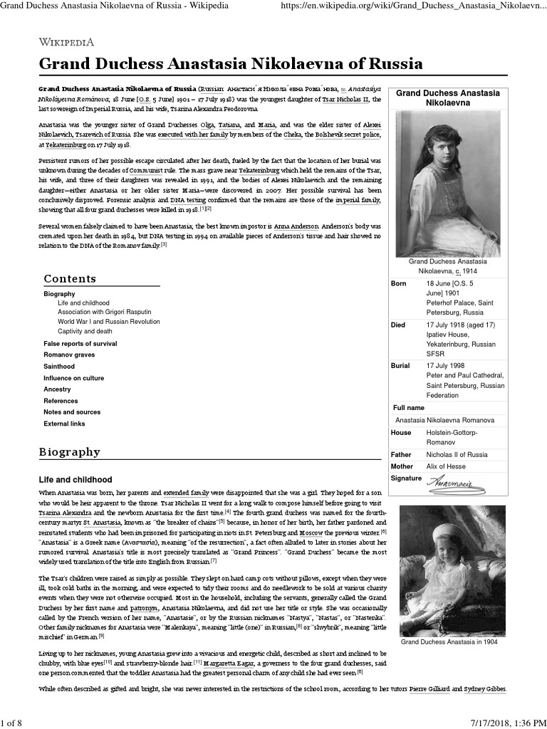 Grand Duchess Anastasia Nikolaevna of Russia - Wikipedia                                           https://en.wikipedia.org/wiki/Grand_Duchess_Anastasia_Nikolaevn...