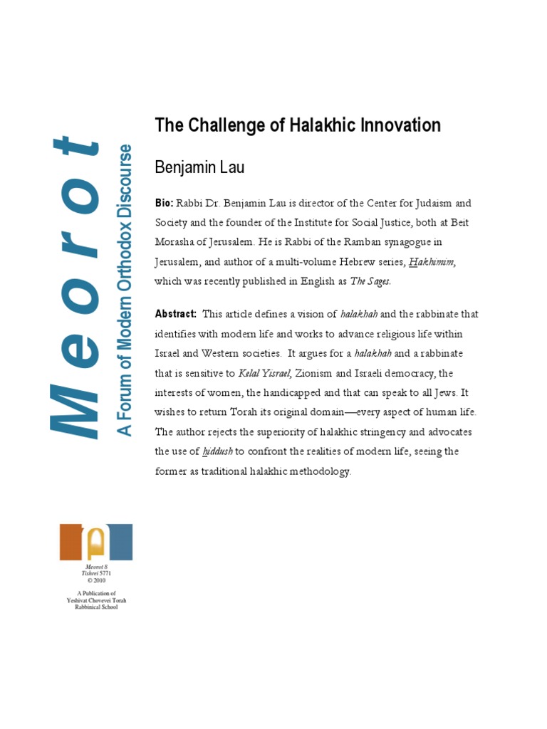 The Challenge of Halakhic Innovation by Rabbi Benjamin Lau