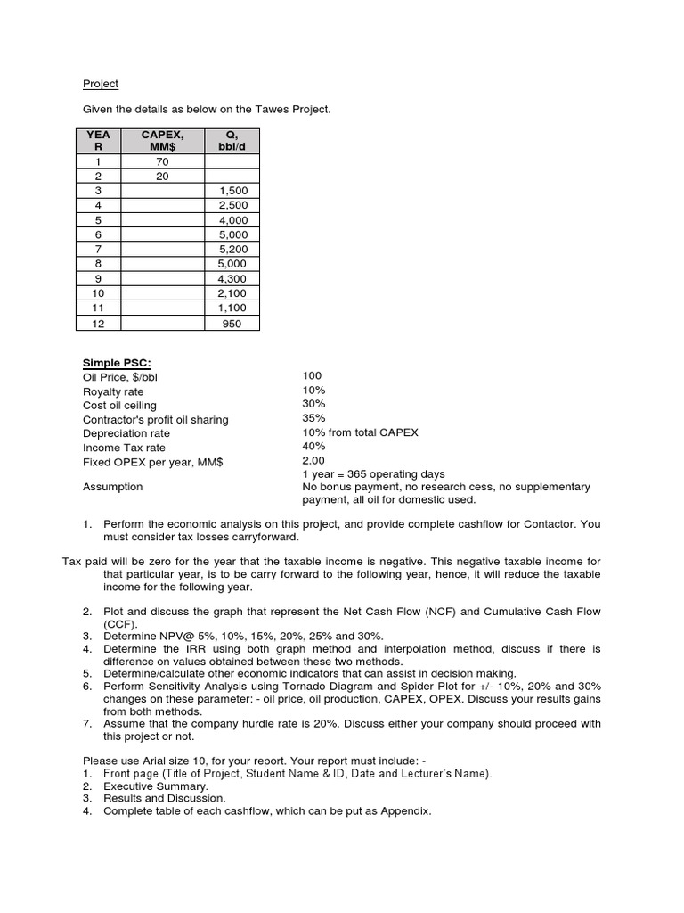 changes on these parameter: - oil price, oil production, CAPEX, OPEX. Discuss your results gains