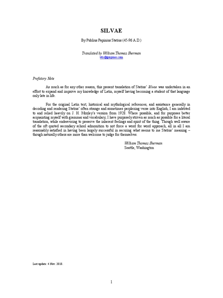 As much as for any other reason, this present translation of Statius’ Silvae was undertaken in an