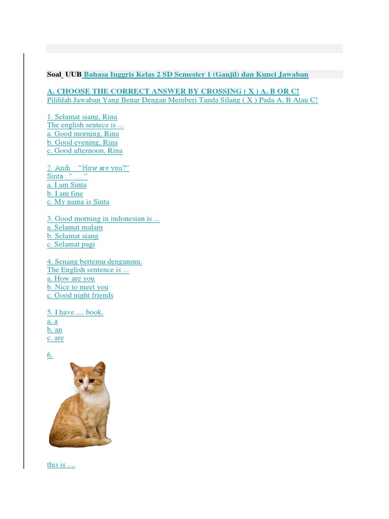 - > Soal UAS Bahasa Inggris Online Kelas 2 SD Semester 1 (Ganjil) - Langsung Ada