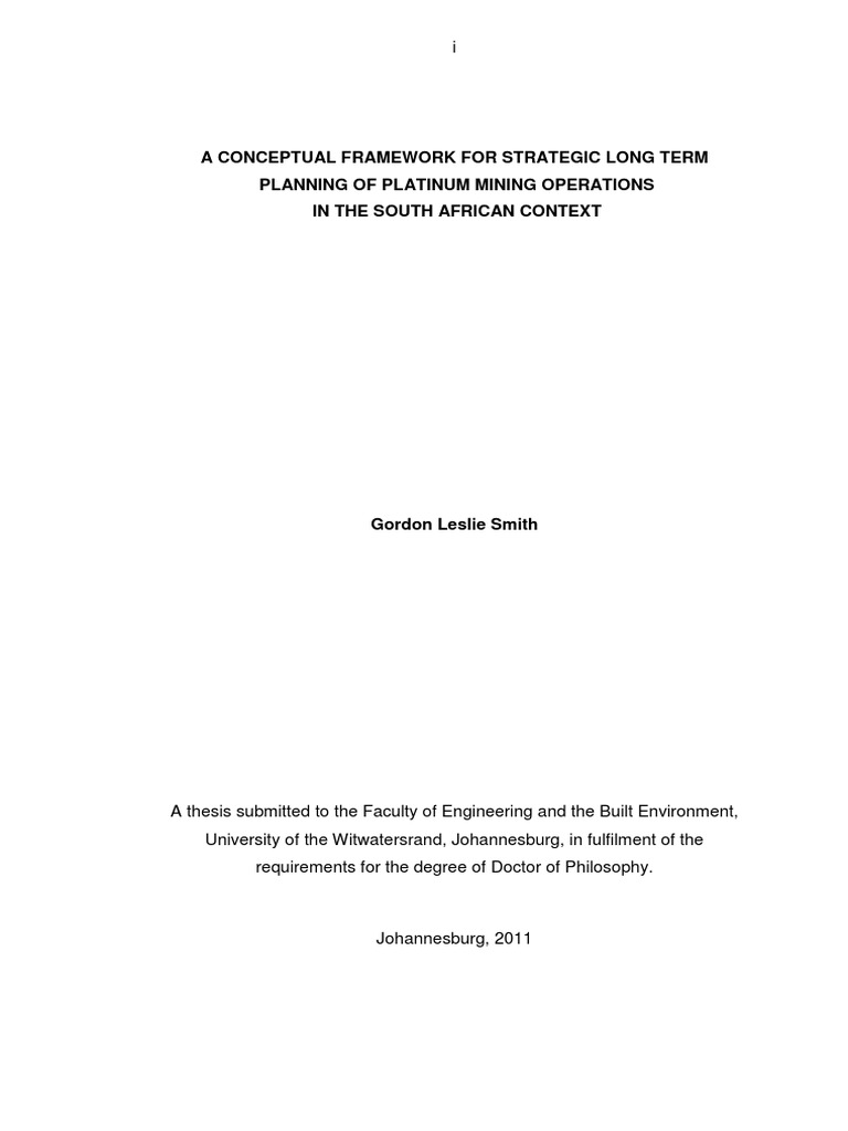 G L Smith - PHD - A Conceptual Framework For The Strategic Long Term Planning of Platinum Mining Operations in The South African Context PDF