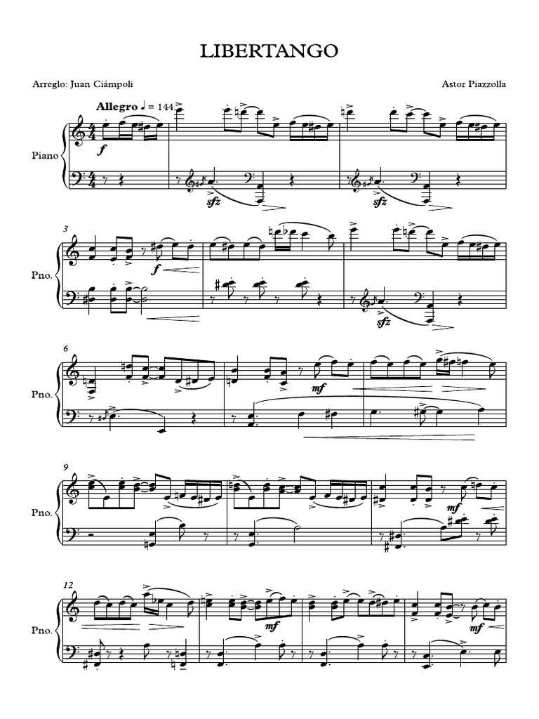 Libertango. Arreglo para Piano Solo. Juan Ciámpoli.