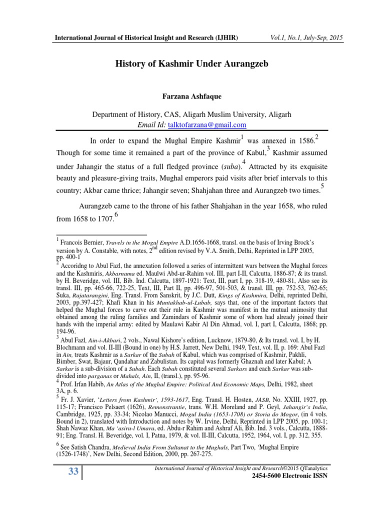 Ma ‘asir-i-Alamgiri, p. 52; Hashmatullah Khan, Mukhtasar Tarikh-i-Jammu Wa Kashmir, Jammu, 1992,