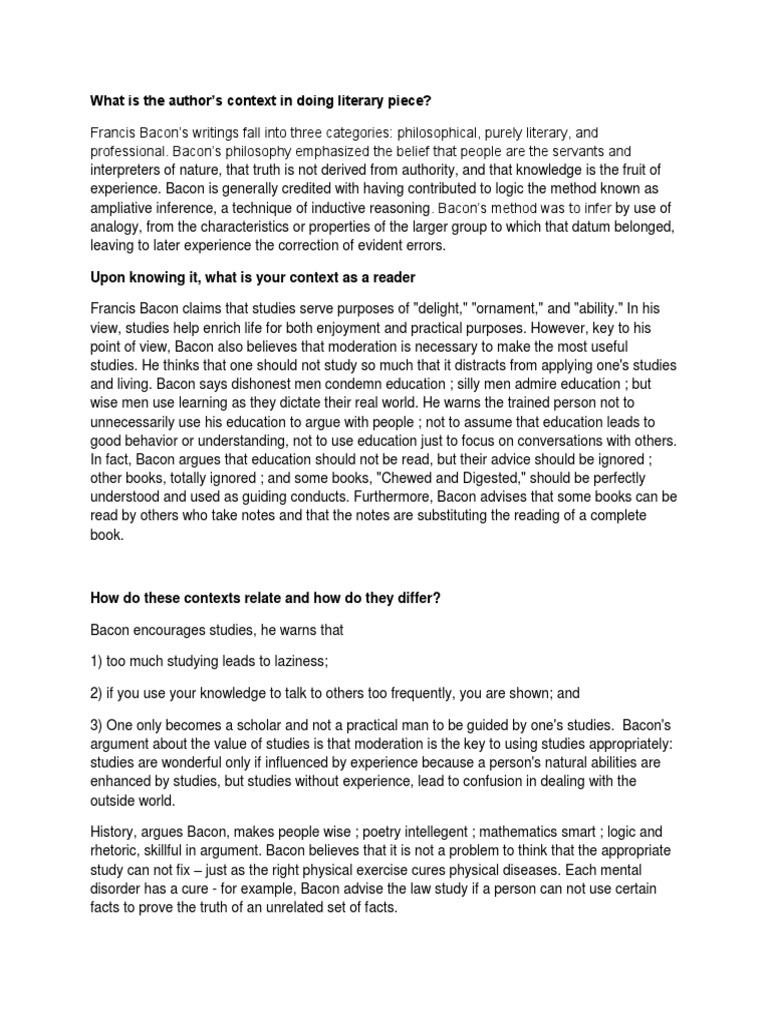 rhetoric, skillful in argument. Bacon believes that it is not a problem to think that the appropriate