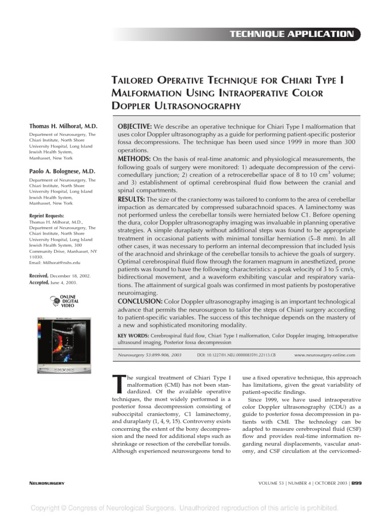 2. James HE, Brant A: Treatment of the Chiari malformation with bone decom- Neurosurg 11(26), 1989.