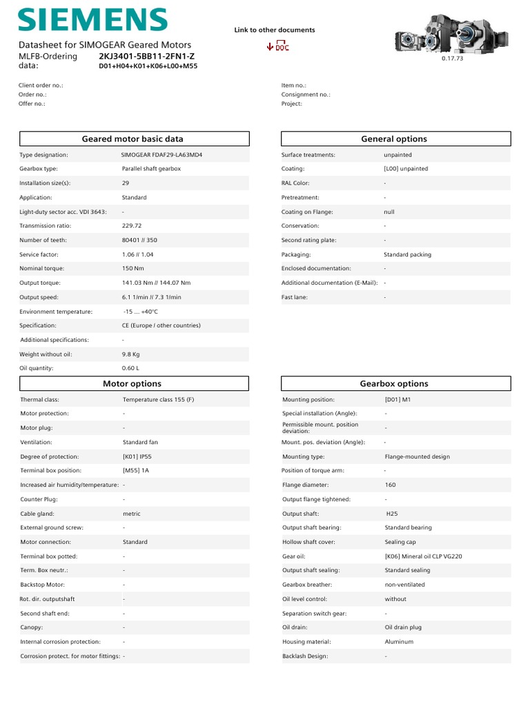 Type designation: SIMOGEAR FDAF29-LA63MD4 Surface treatments: unpainted