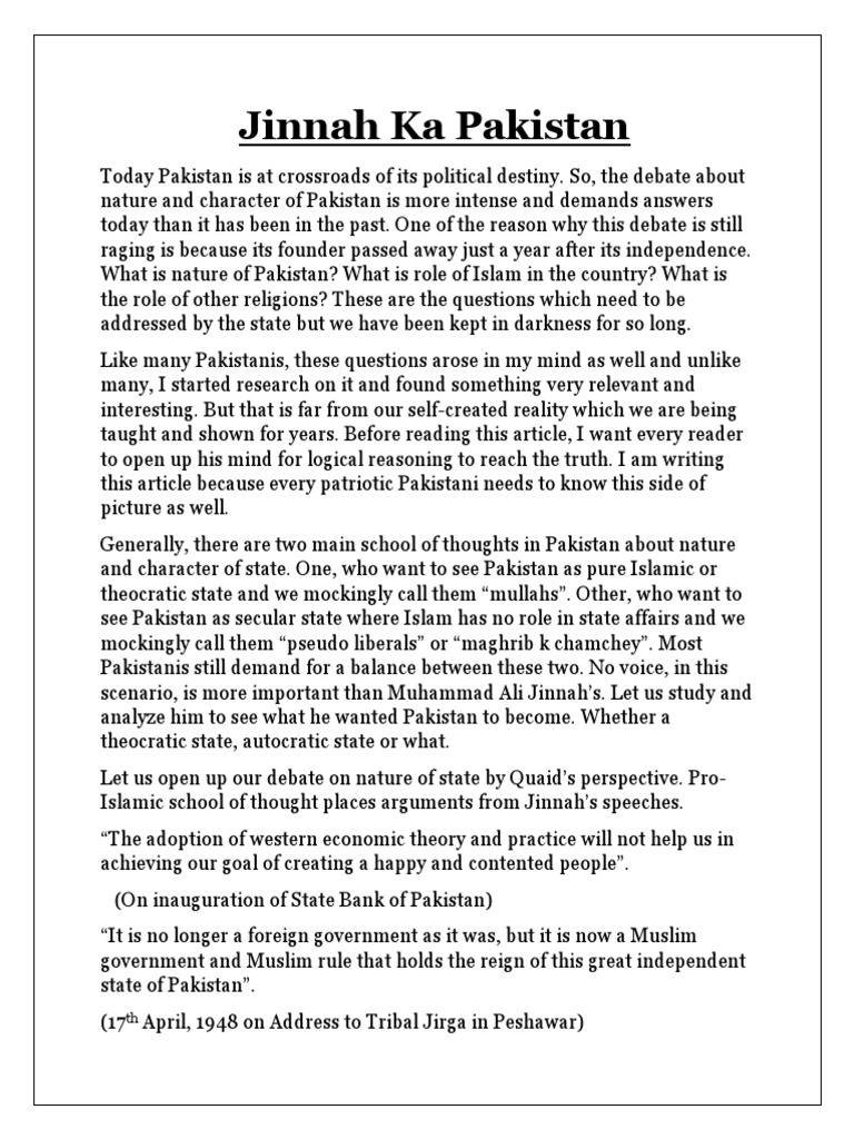 Islamic school of thought places arguments from Jinnah’s speeches.