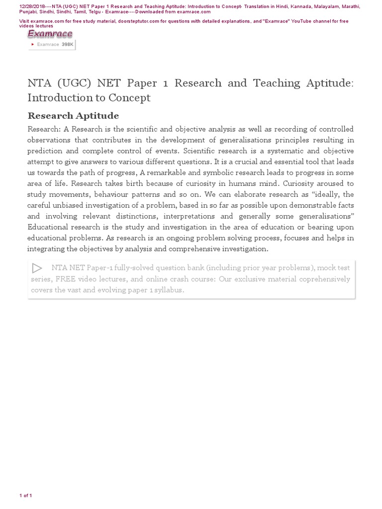 NTA (UGC) NET Paper 1 Research and Teaching Aptitude:
