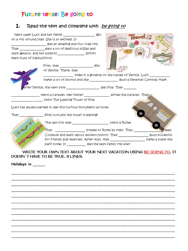 WRITE YOUR OWN TEXT ABOUT YOUR NEXT VACATION USING BE GOING TO. IT