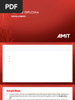 1) The document describes building a Flutter app that displays nearby places on a map and allows searching places using the Google Maps and Google Places APIs. 2) It discusses setting up the project dependencies, configuring API keys, and building two screens - a main screen that shows a list of nearby places on a map, and a detail screen that displays more information about a place on a map. 3) It also covers adding a search bar that provides autocomplete suggestions from Google Places when the user searches for a location.
