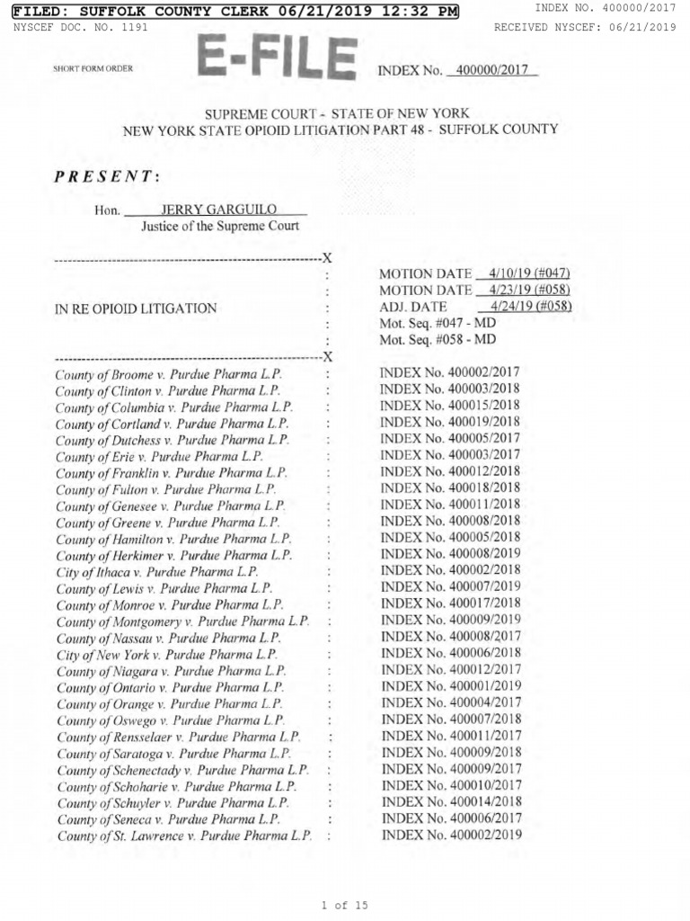 County of Herkimer v. Purdue Pharma L.P. INDEX No. 400008/2019
