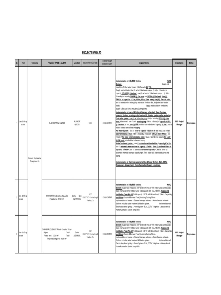Tel.: (+974) 4322250 PROJECT HANDLED