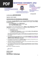to inform you that you have been offered provisional admission into LINGUISTICS in the ARTS AND EDUCATION to