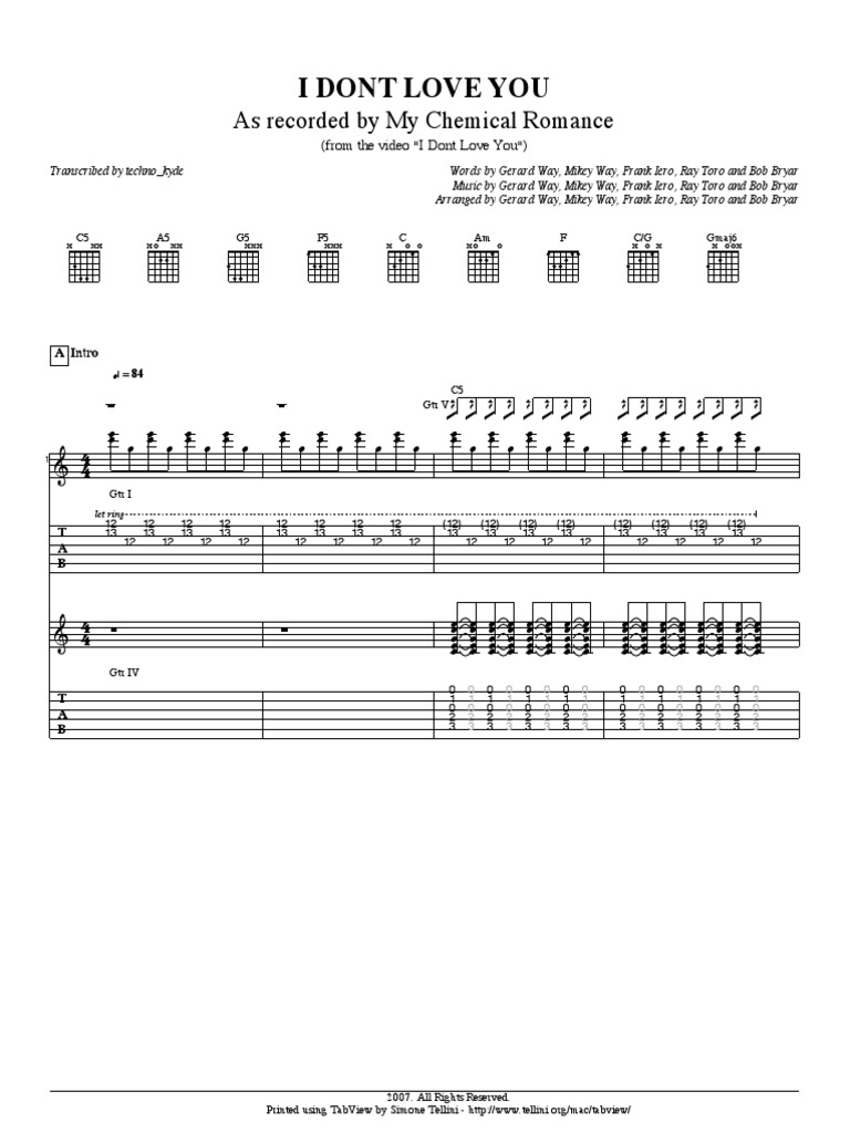 My Chemical Romance Guitar Tabs