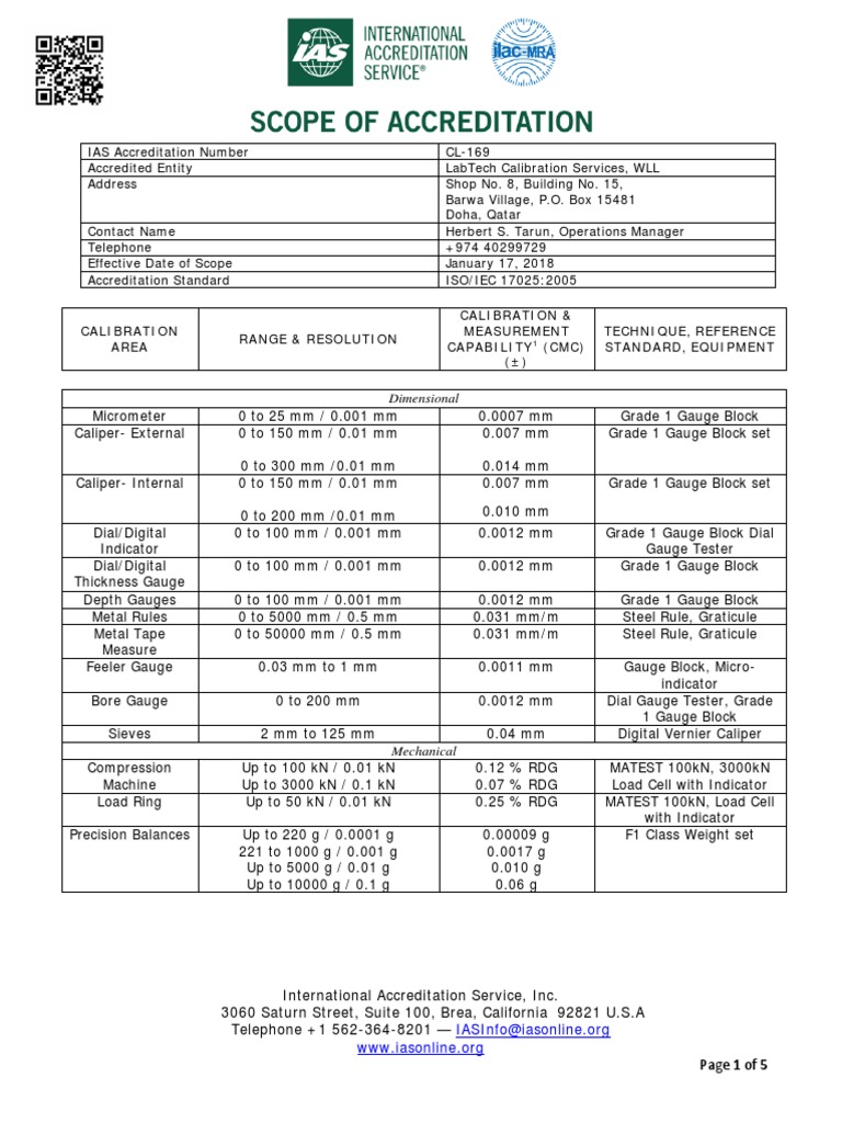 Accredited Entity LabTech Calibration Services, WLL