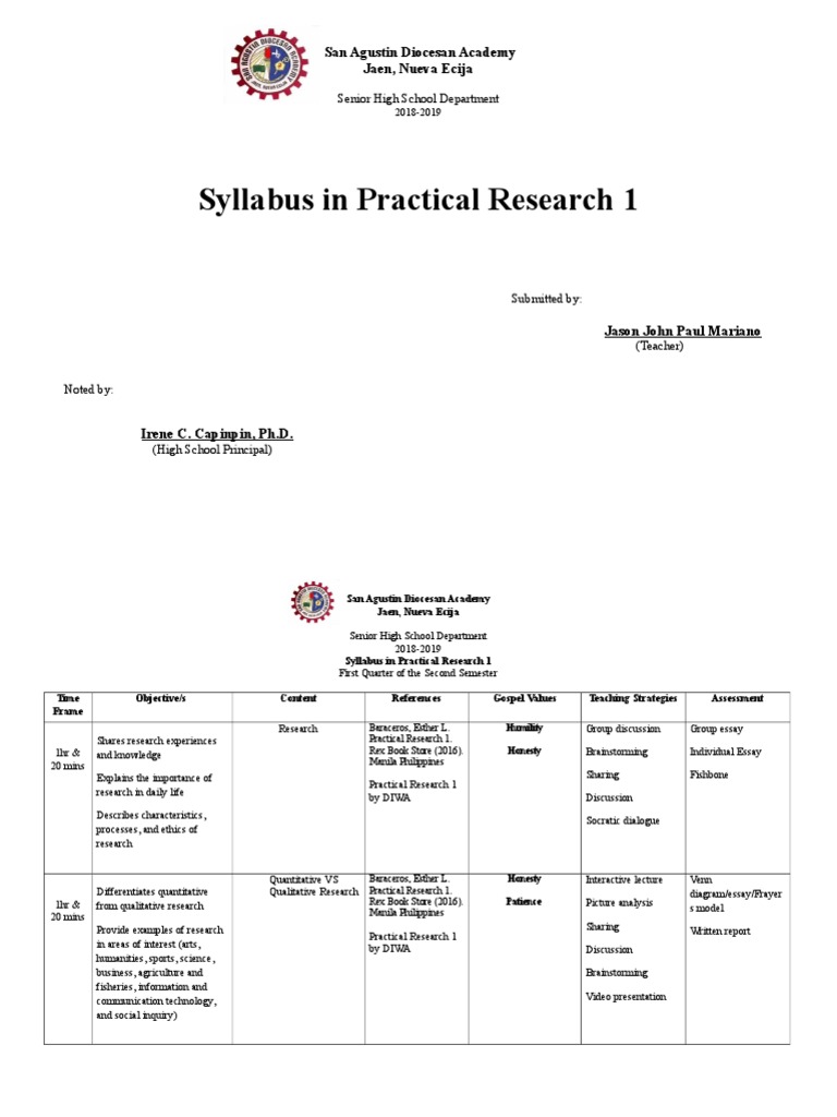 Cites benefits and Research problems and Baraceros, Esther L. Patience Video Actual output