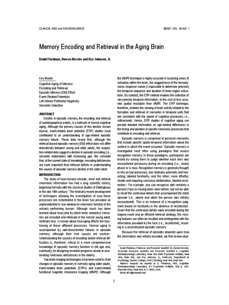changes in episodic memory in normally aging older adults, Address requests for reprints to D. Friedman, PhD, Cognitive