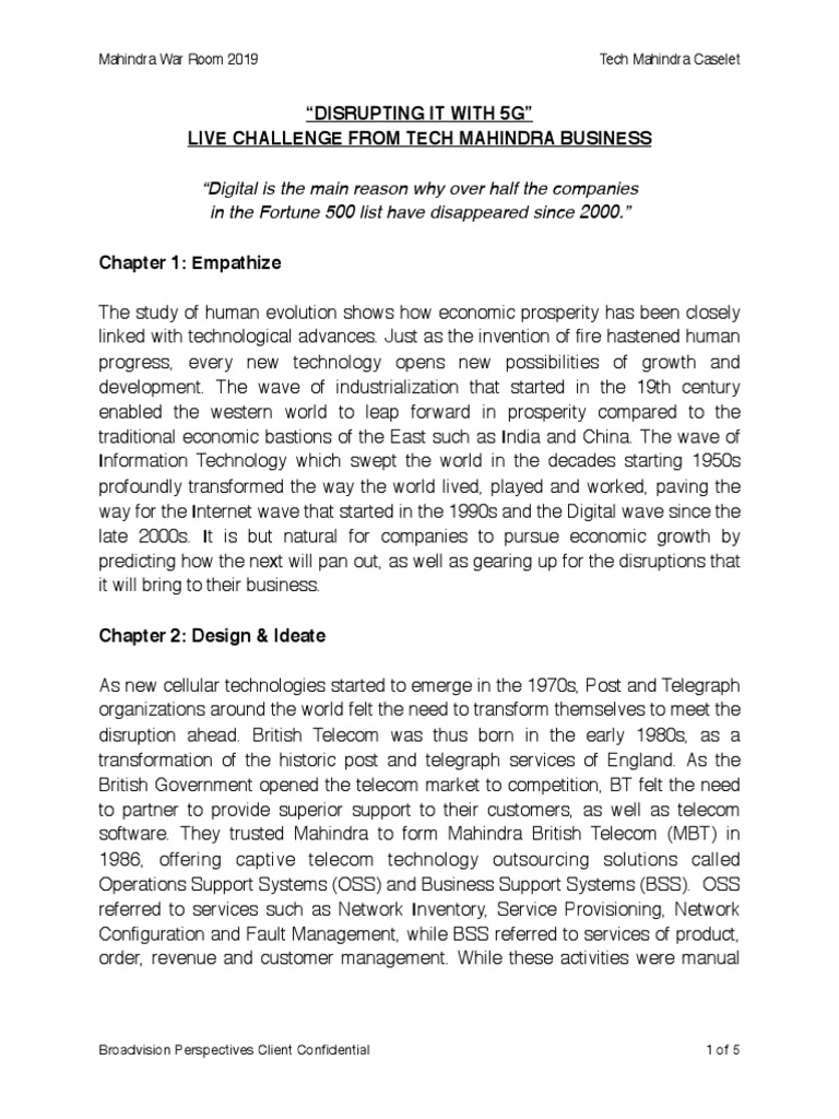 Mahindra War Room 2019 Tech Mahindra Caselet