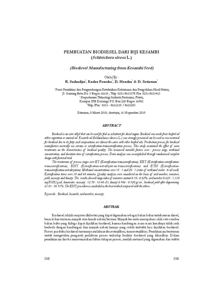 1. Minyak kesambi memiliki potensi untuk dijadikan biodiesel karena memiliki kandungan