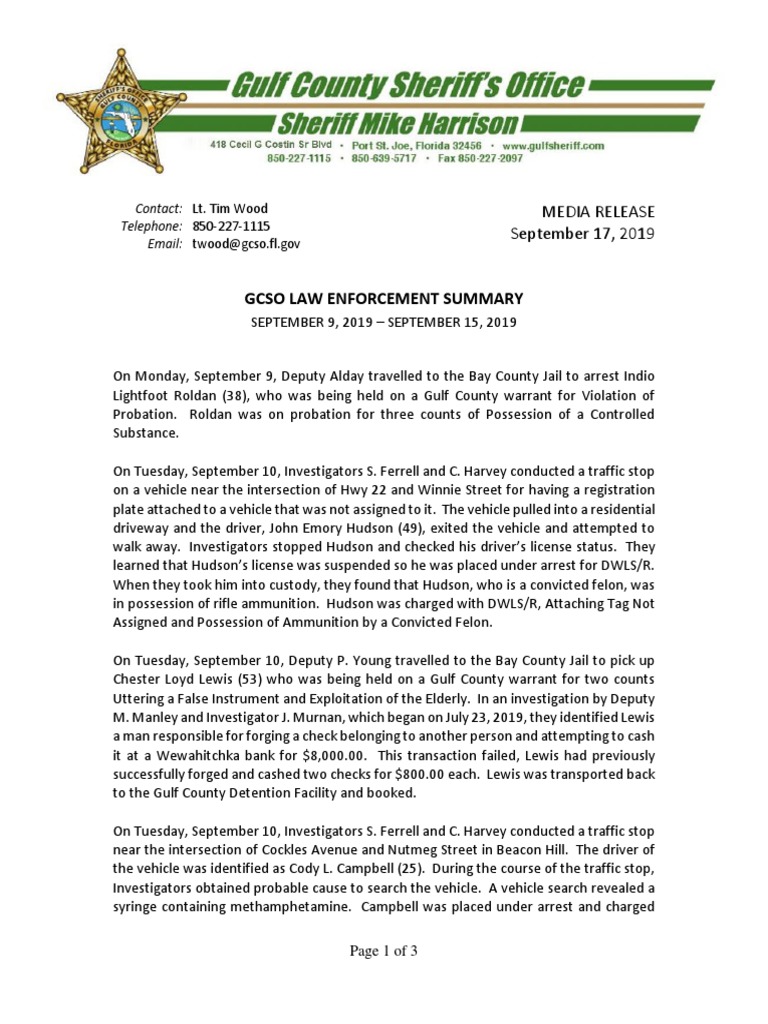 [email protected] GCSO LAW ENFORCEMENT SUMMARY