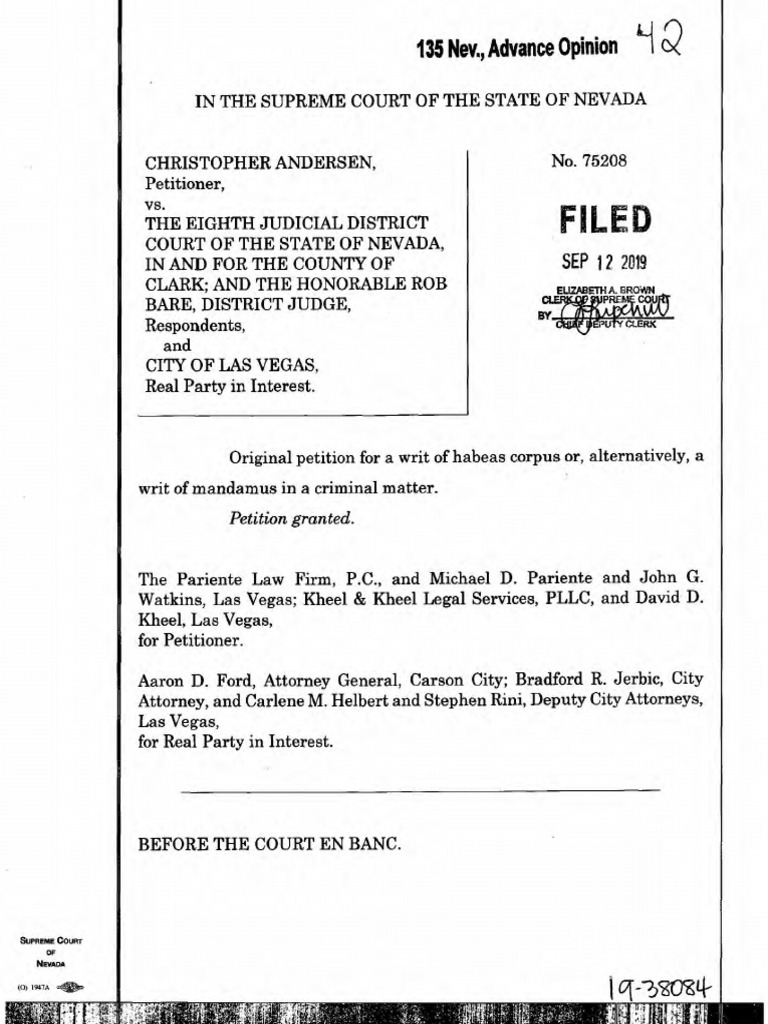 1Andersen and the City of Las Vegas agreed to a stay of the execution