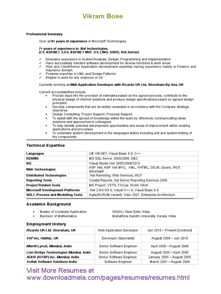 Visit More Resumes at