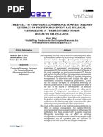ruh terhadap kinerja tetapi pengaruhnya hanya nesia periode 2010—2013. Penelitian ini akan