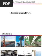 1. The document discusses bending stress and deformation characteristics in beams under bending loads. It describes how straight lines in the beam become curved and how planes remain plane after bending. 2. It introduces the neutral surface and neutral axis, which experience no tension or compression after bending. Hooke's law is described relating normal stress to distance from the neutral axis. 3. An example beam problem is solved to find maximum tensile and compressive stresses at different cross sections. The bending moment diagram is drawn and used with the section modulus to calculate stresses.