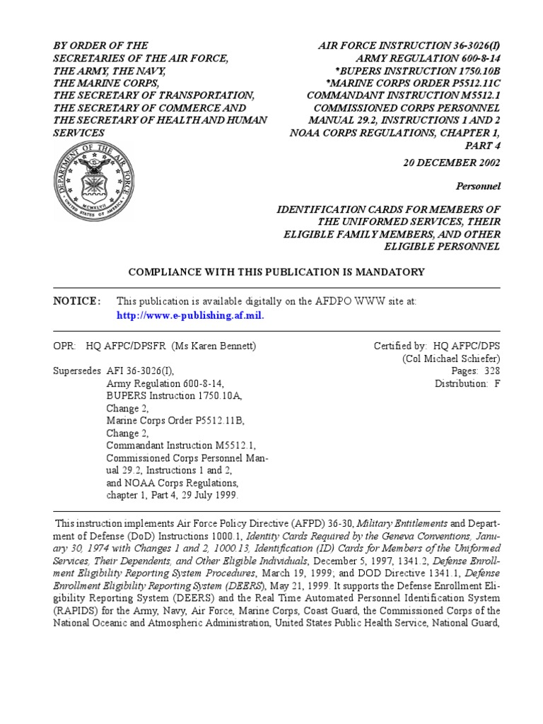 ary 30, 1974 with Changes 1 and 2, 1000.13, Identification (ID) Cards for Members of the Uniformed