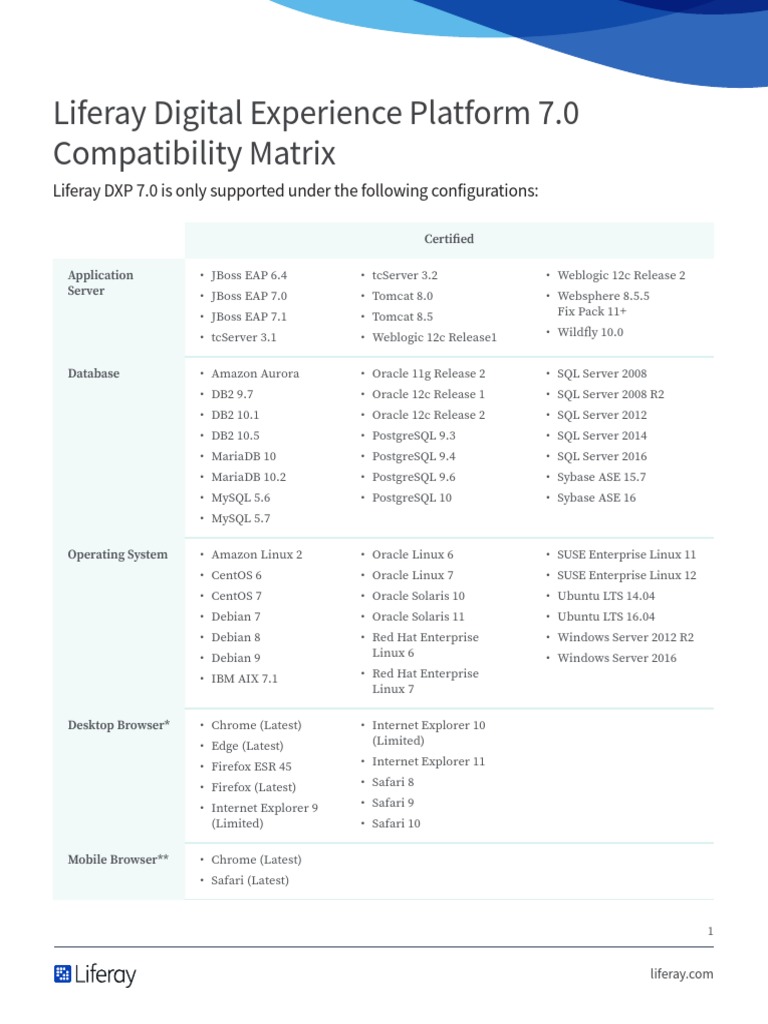 For more information on configurations and limitations with Application Servers and Databases that are compatible with Liferay DXP,