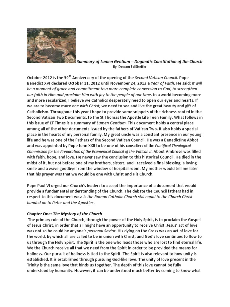 Summary of Lumen Gentium – Dogmatic Constitution of the Church