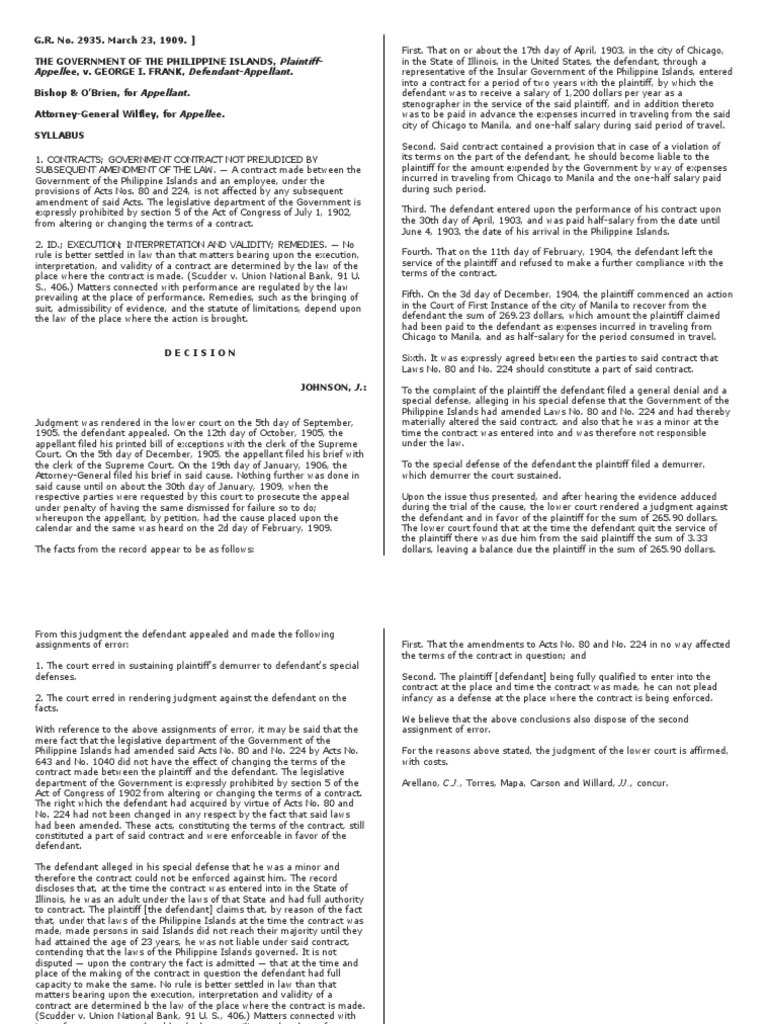 that, under that laws of the Philippine Islands at the time the contract was