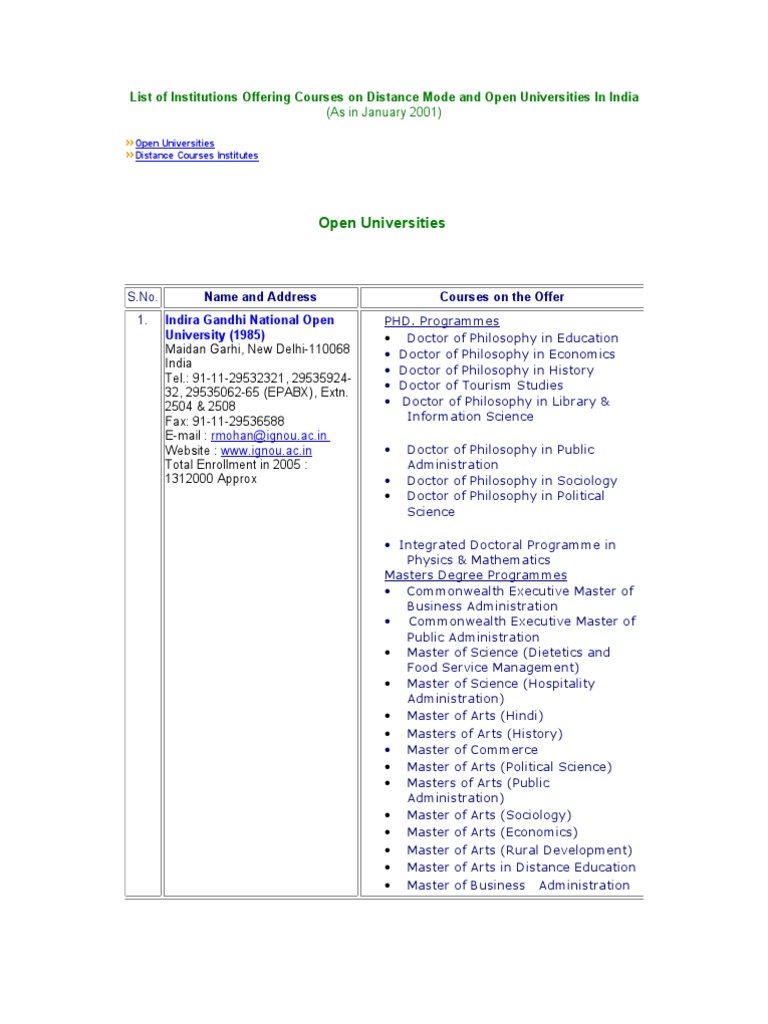 List of Institutions Offering Courses on Distance Mode and Open Universities In India