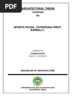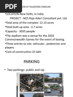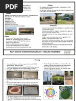 The document discusses a proposed thesis topic for constructing a new cricket stadium in Trichy, Tamil Nadu. It outlines details of the proposed stadium such as accommodating 75,000 spectators, including 4 dressing rooms, indoor and outdoor practice nets. The pitch would be slightly oval in shape with minimum dimensions defined by ICC standards. Case studies of existing cricket stadiums in Chennai, Melbourne, and Adelaide are referenced. The proposed site for the new stadium in Trichy would cover 30 acres and include facilities like parking, floodlights, and seating.