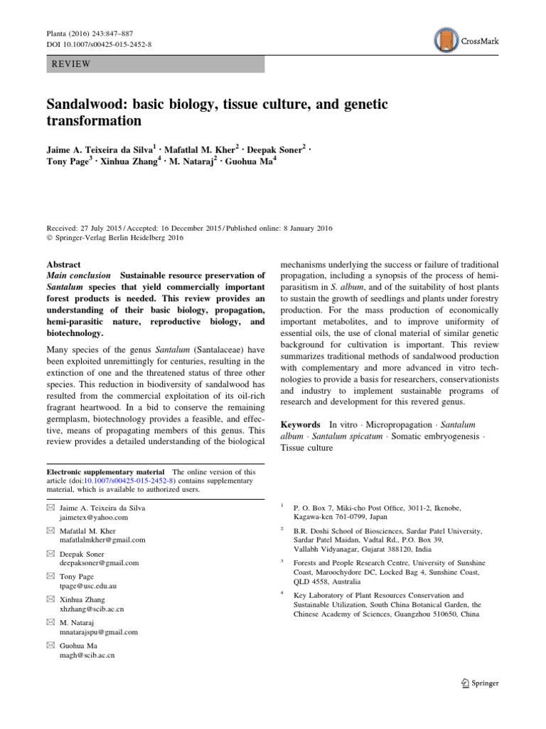 Res 11:203–209. doi:10.1007/s10310-006-0207-x Tate H, Sethy M, Tungon J (2006) Grafting of sandalwood in