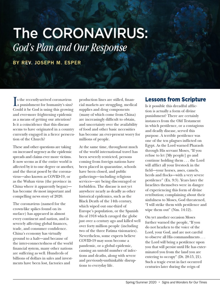 who suffer from the coronavirus or Joe has lectured at Marian conferences,