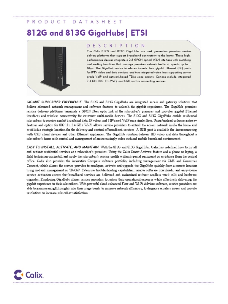 The Calix 812G and 813G GigaHubs are next generation premises service