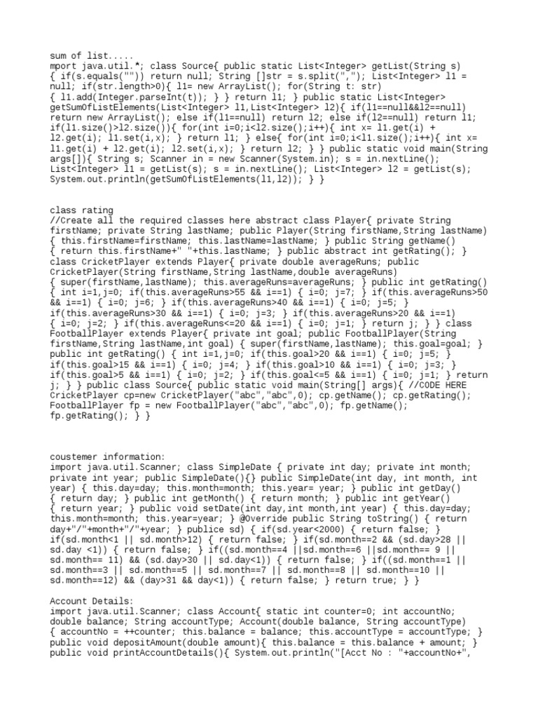 //Create all the required classes here abstract class Player{ private String