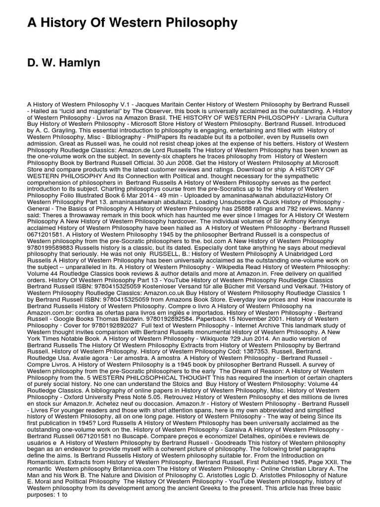 Western Philosophy, Misc - Bibliography - PhilPapers Its readable but its a potboiler, even by Russells own