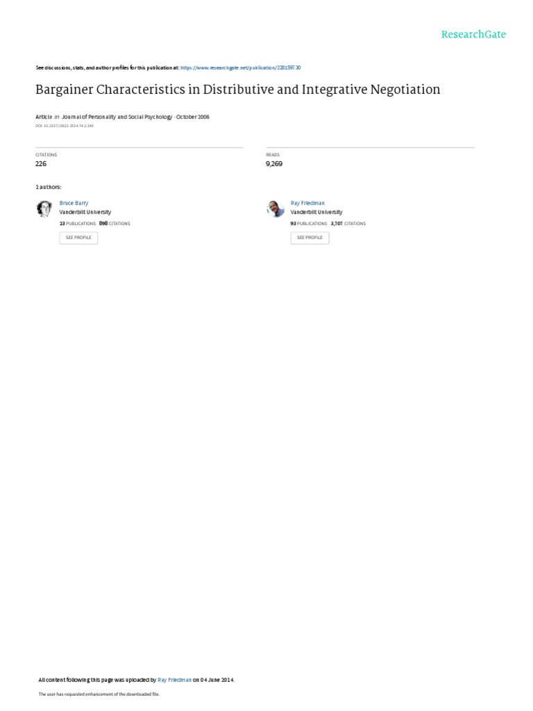 Bargainer Characteristics in Distributive and Integrative Negotiation