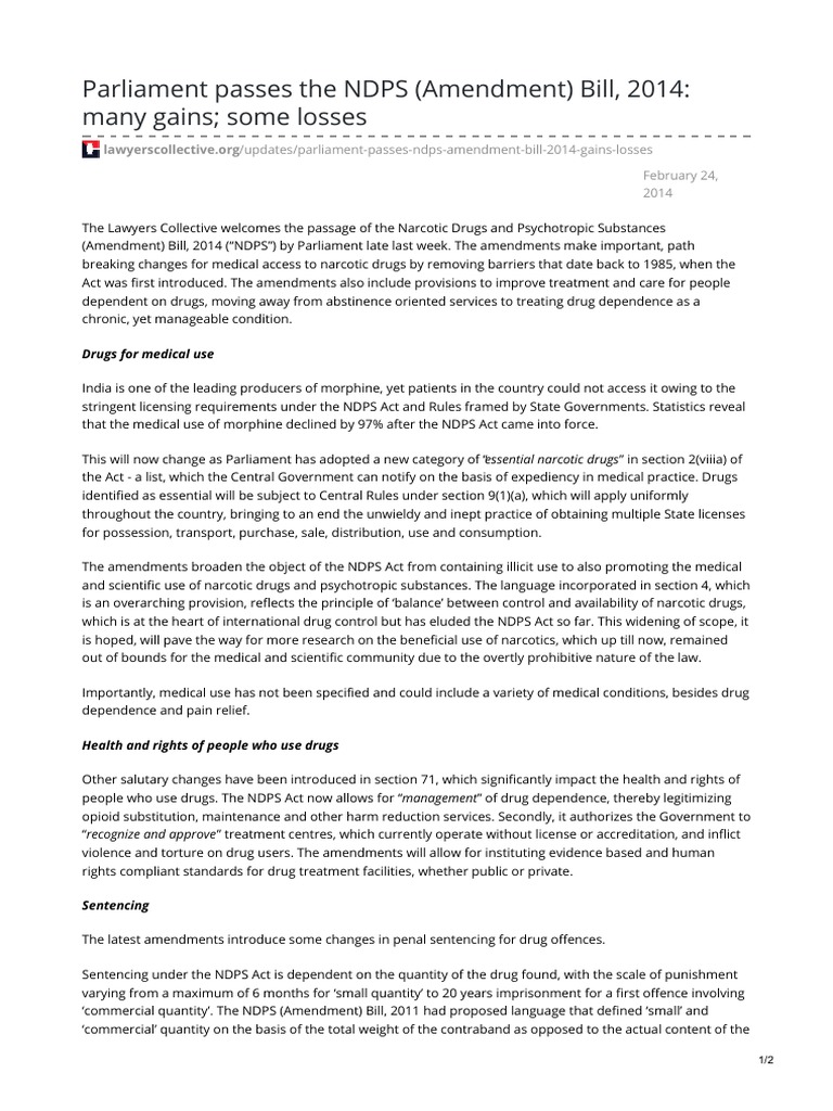 Parliament Passes The NDPS Amendment Bill 2014 Many Gains Some Losses
