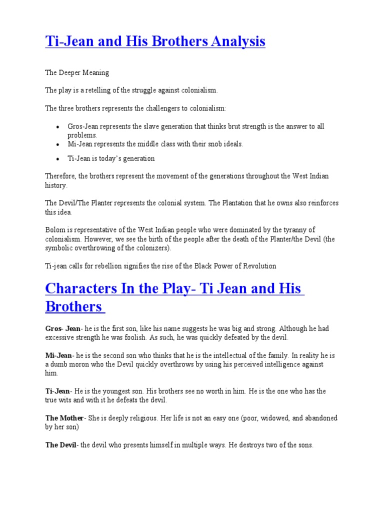 Ti-Jean and His Brothers Analysis